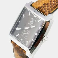 Tag Heuer Brown Stainless Steel Python Skin Leather Monaco WW2115.FC6217 Men’s Wristwatch 37 Mm For Men