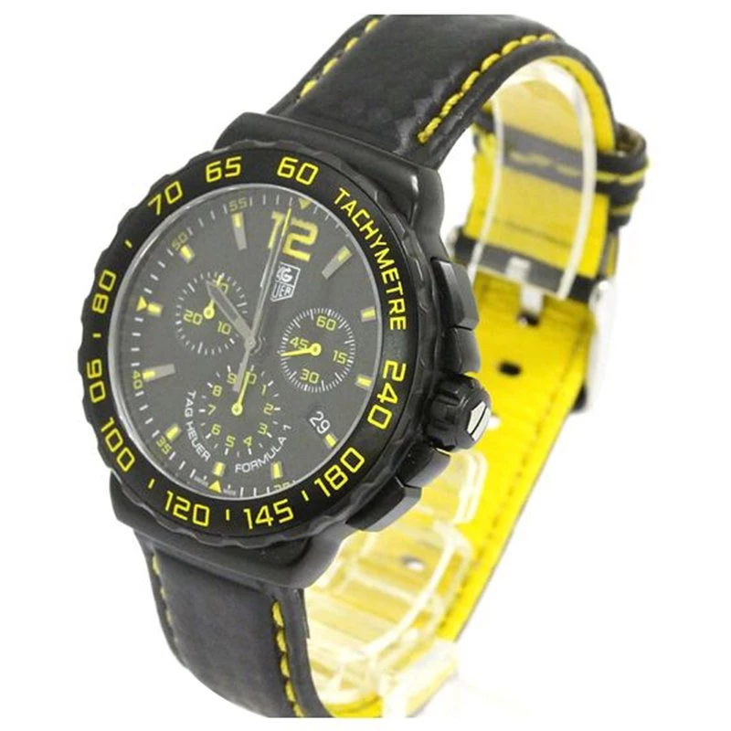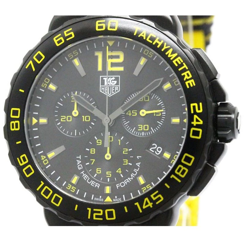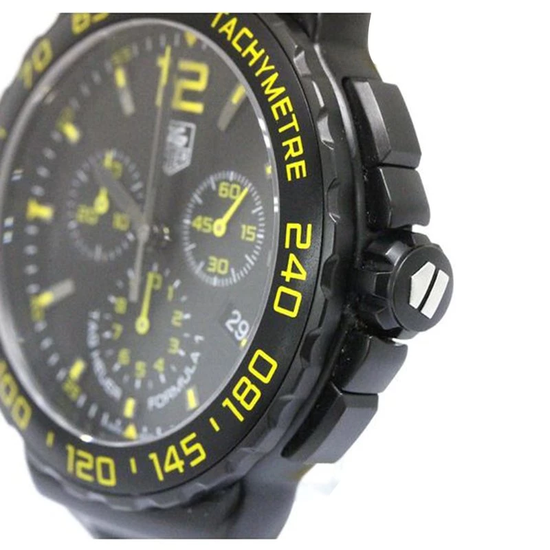 The inspiration for the Formula 1 was the success of the Swatch watch and was the first analogue TAG Heuer series to be quartz-only and to this day there has never been an automatic model. This watch is made of black titanium carbide coated steel case and black titanium carbide coated bezel with tachymeter scale. The dial displayed a date window at four o‘clock and three sub-dials.