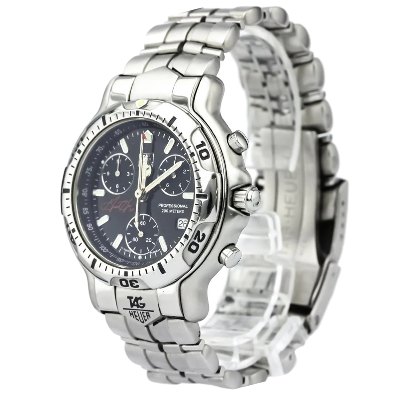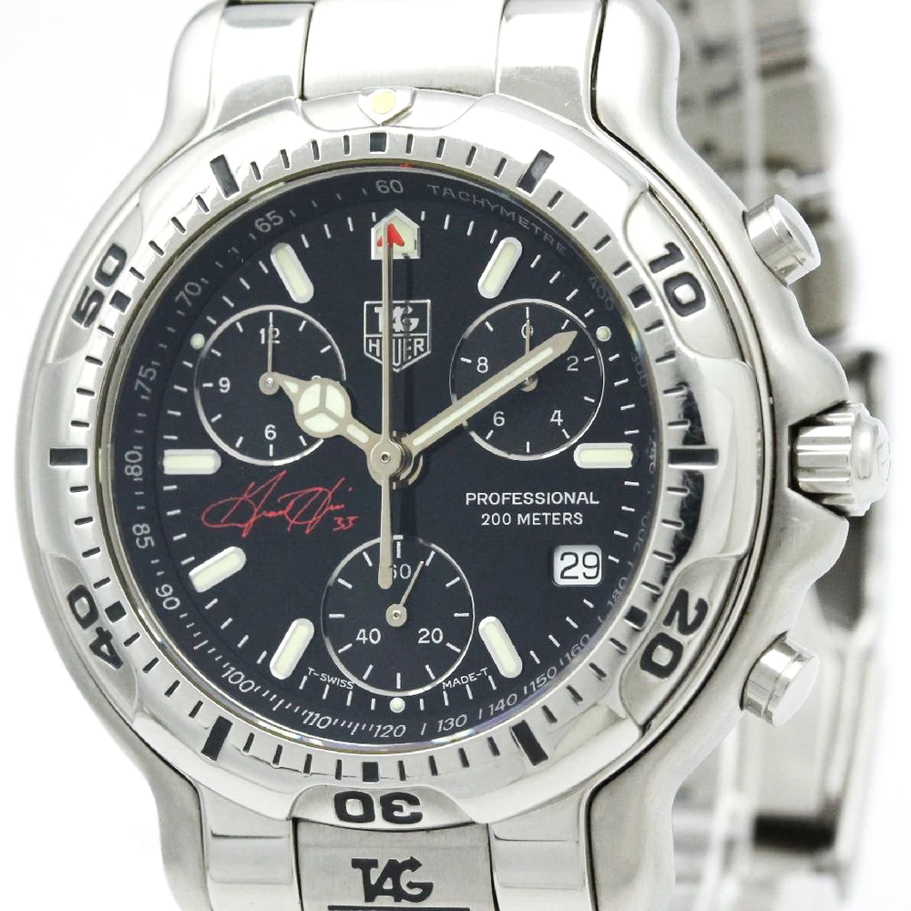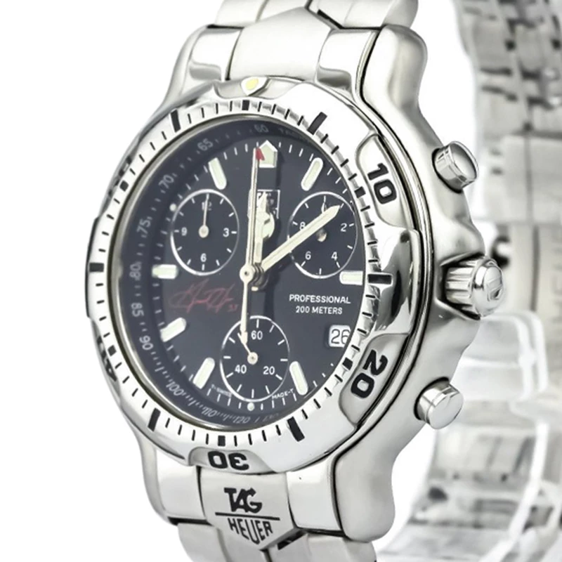 Beautifully designed in stainless steel and a black dial, this Tag Heuer 6000 Series Grant Hill watch exudes a classic, stylish and versatile look for both casual chic and smart wear. With three sub dials for your convenience, this watch also features luminescent filled hour indexes and hands for use up to 200 meters under water.