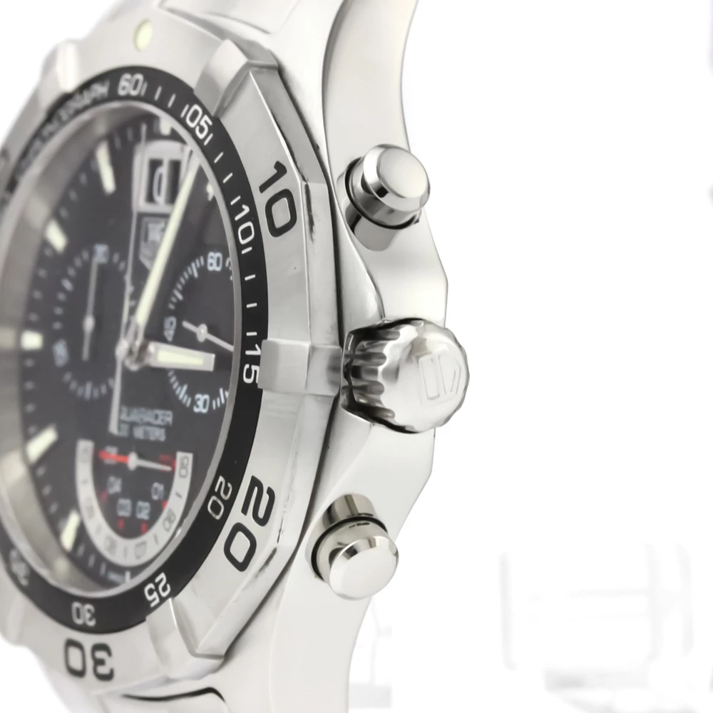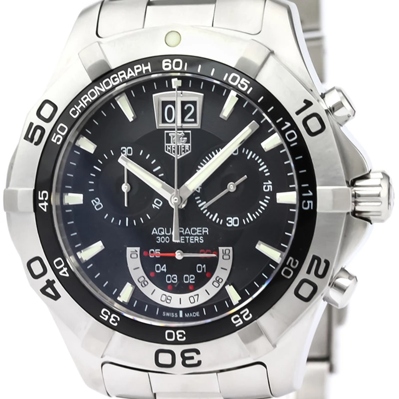Tag Heuer presents an epic watch from their Aqua Racer line of watches. This timepiece comes with a black dial and three sub-dials that have unique functions. The watch comes with a high precision chronograph and a fixed stainless-steel bezel and linked stainless-steel straps. It is a statement-making accessory.