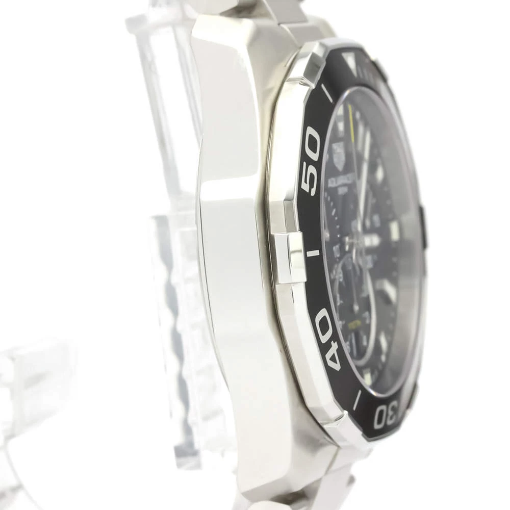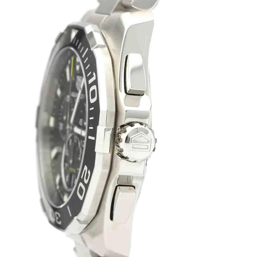 Stay on-trend at all times with this stunning Tag Heuer Aquaracer wristwatch. The dashing black dial offers a striking contrast to the uniform stainless steel case and bracelet. Powered by quartz movement, this watch comes equipped with a chronograph, date functions.