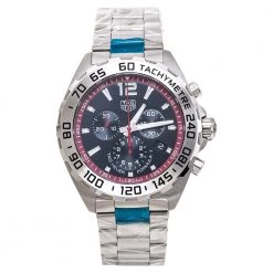 Formula 1 watches from Tag Heuer are high-performance timepieces that are meticulously crafted to meet the wants of an on-the-go life. Designed with a 43 MM stainless steel case, the watch features a tachymeter scale on the bezel and a circular dial with luminous hands and index hour markers. The dial is further equipped with minute markers and three subdials. Powered by a quartz movement and graced with a water resistance of 200 Meters, this robust, sporty-looking watch is complete with a link bracelet secured by deployment clasp and covered back with Formula 1 checkerboard patterning.