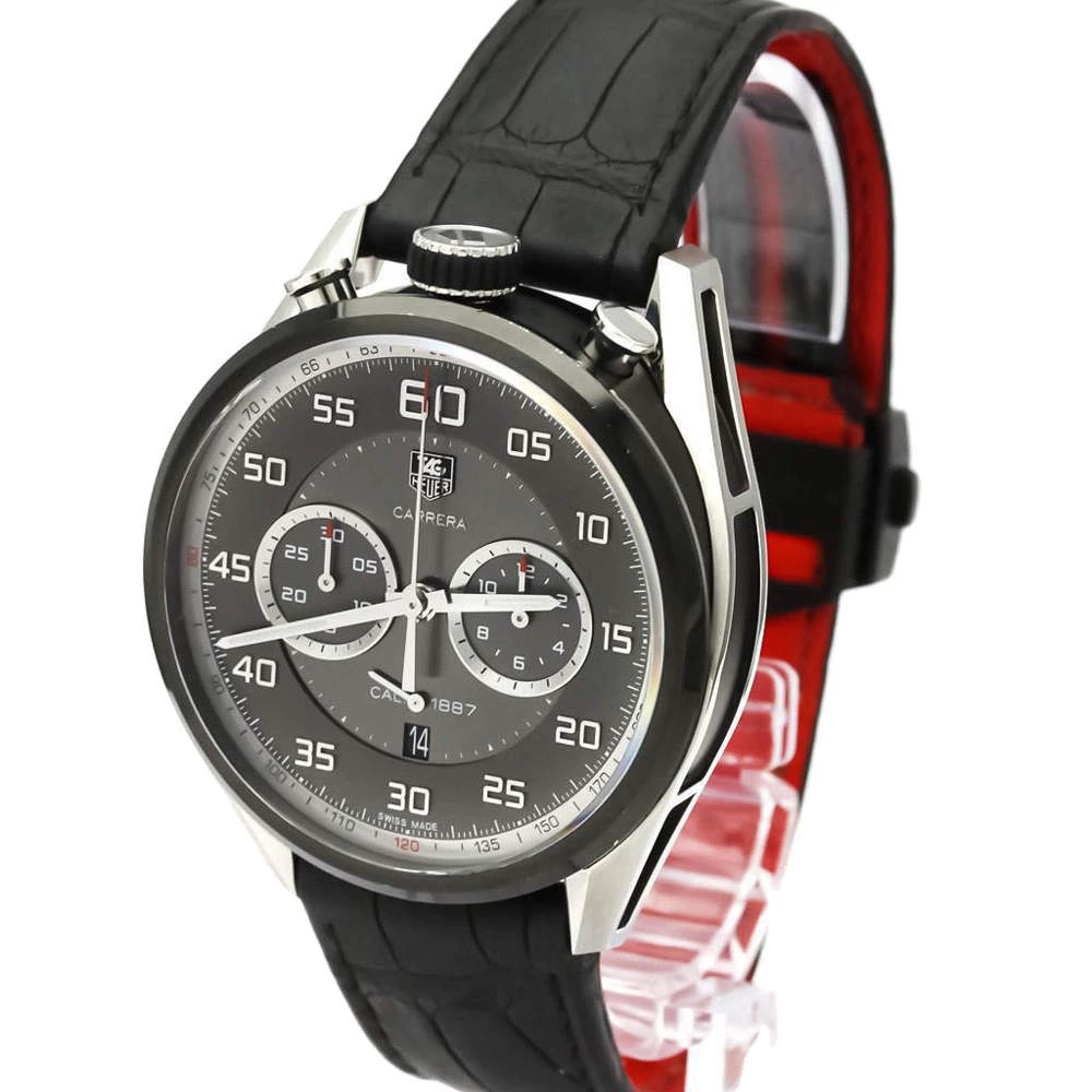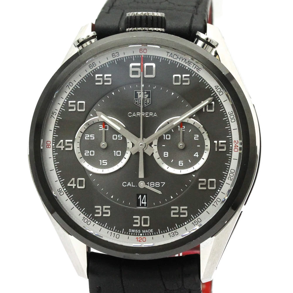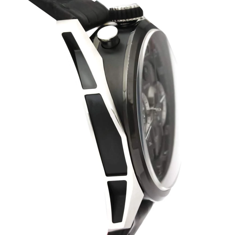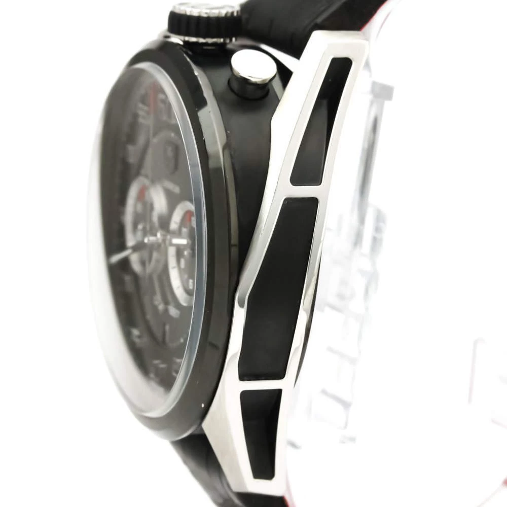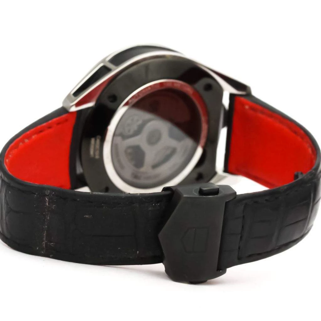 A fashion-meets-function timepiece, this dashing Tag Heuer wristwatch will be a game-changer addition when styling your outfits. The watch combines a black dial with a stainless steel case and a titanium bezel. It is secured by an elegant black rubber strap.