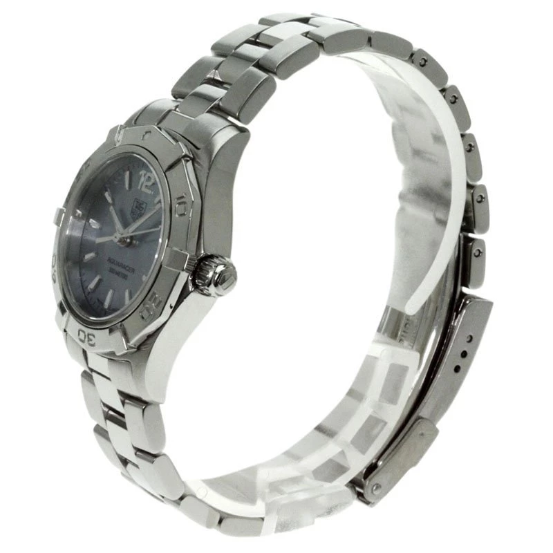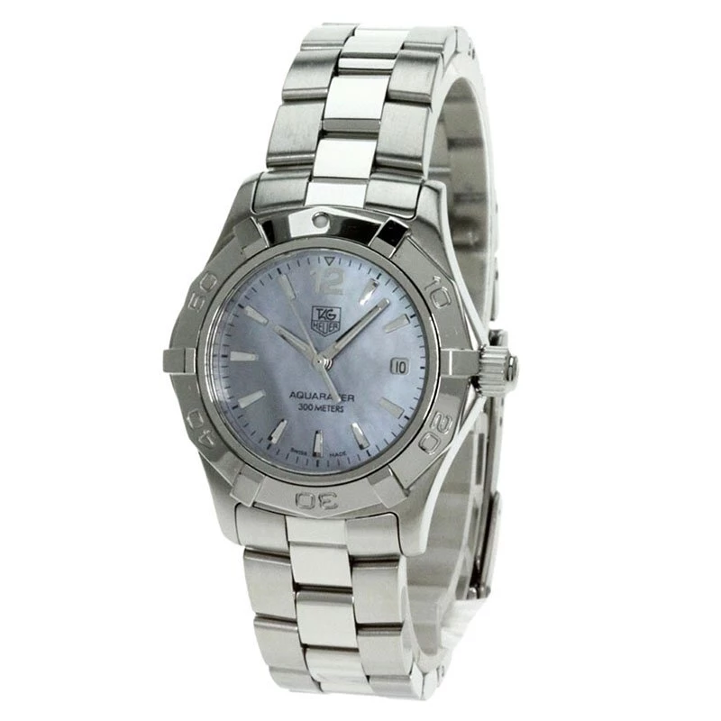 The TAG Heuer Aquaracer series is the ultimate watch for active lifestyles. Its advanced technology makes it a benchmark for performance, strength and precision. This women’s TAG Heuer Aquaracer watch features “AQUARACER – 300M” lettering, “TAG Heuer” logo at 12 o’clock, on the blue Mother-of-Pearl dial. The faceted hour and minute hands with luminescent markers and debossed minute marker bezel add to the fine detailing of this watch.