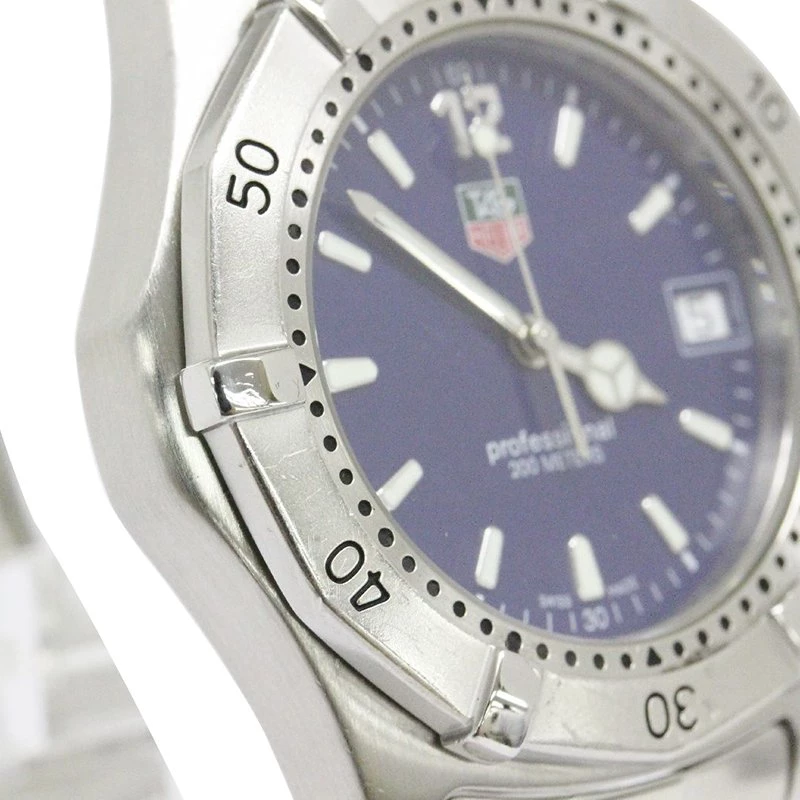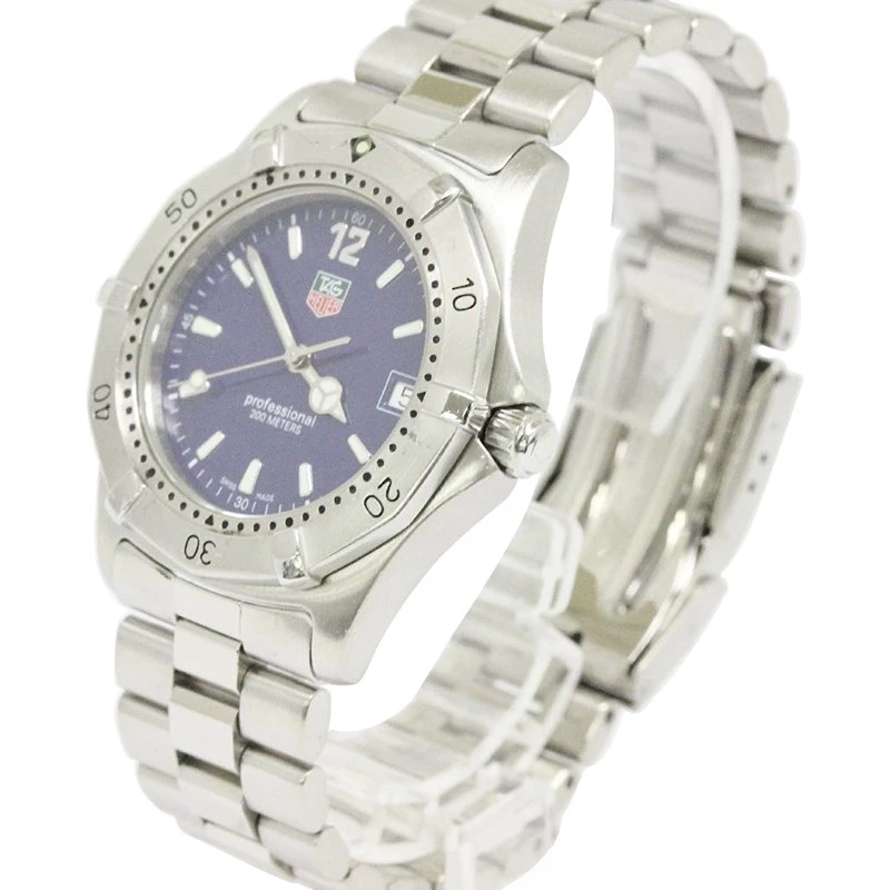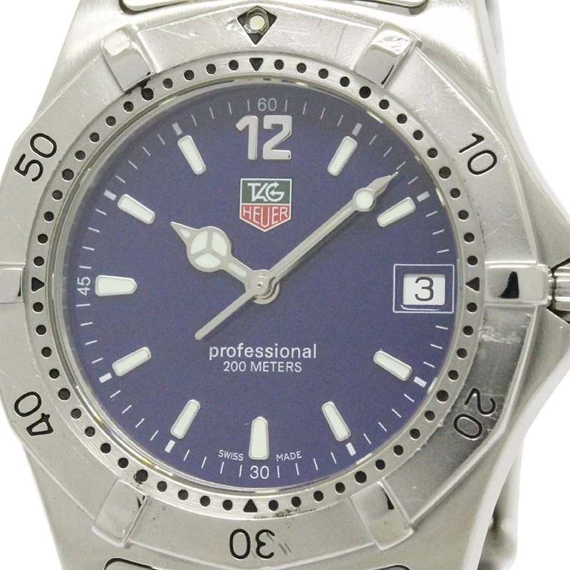 This Tag Heuer 2000 Classic wristwatch is for the new age man. Powerful and charming, this Swiss creation is 200m water resistant and assures durability and longevity. The solid bezel with engraved minute indicators holds a blue dial with a date window and luminous hour indicators and hands. The stainless steel bracelet comes with a hidden deployment clasp.