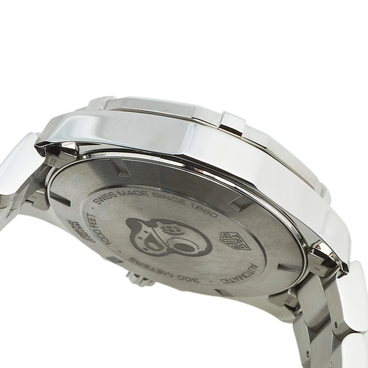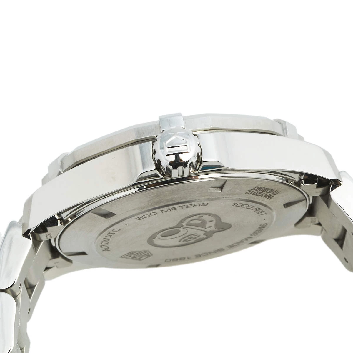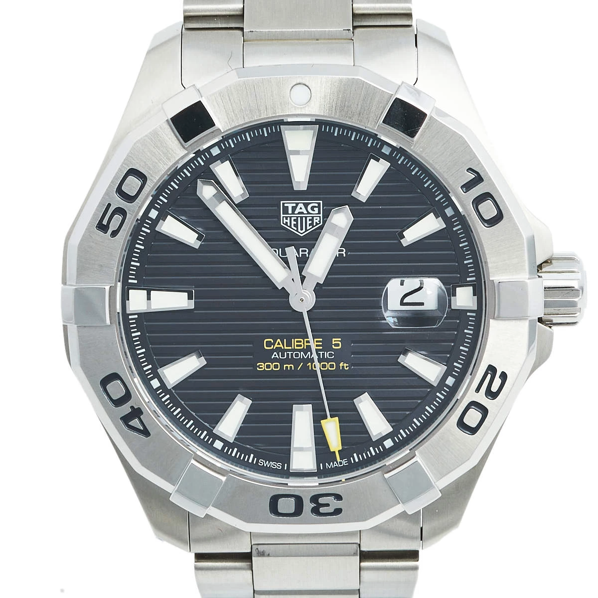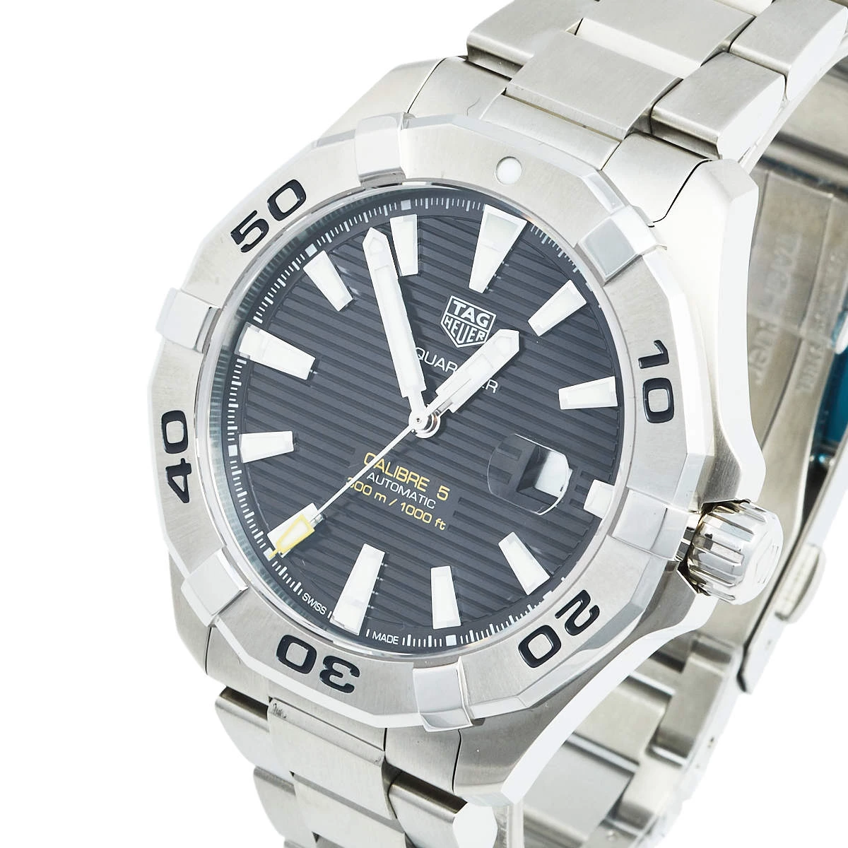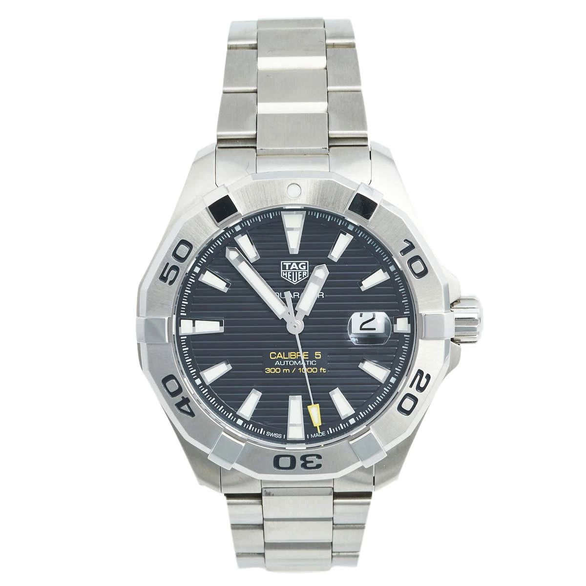 Bring out the adventurer in you with this Tag Heuer Aquaracer watch. Its stainless steel bezel features black engraved Arabic numerals and protruding shiny indicators, coupled with a luminous 12 o’clock indicator. The monogrammed black dial includes luminous hands and indicators, as well as a date window. Featuring a 300M water resistance level and a stainless steel chain link bracelet, this watch has a high durability and is designed to withstand tough conditions.