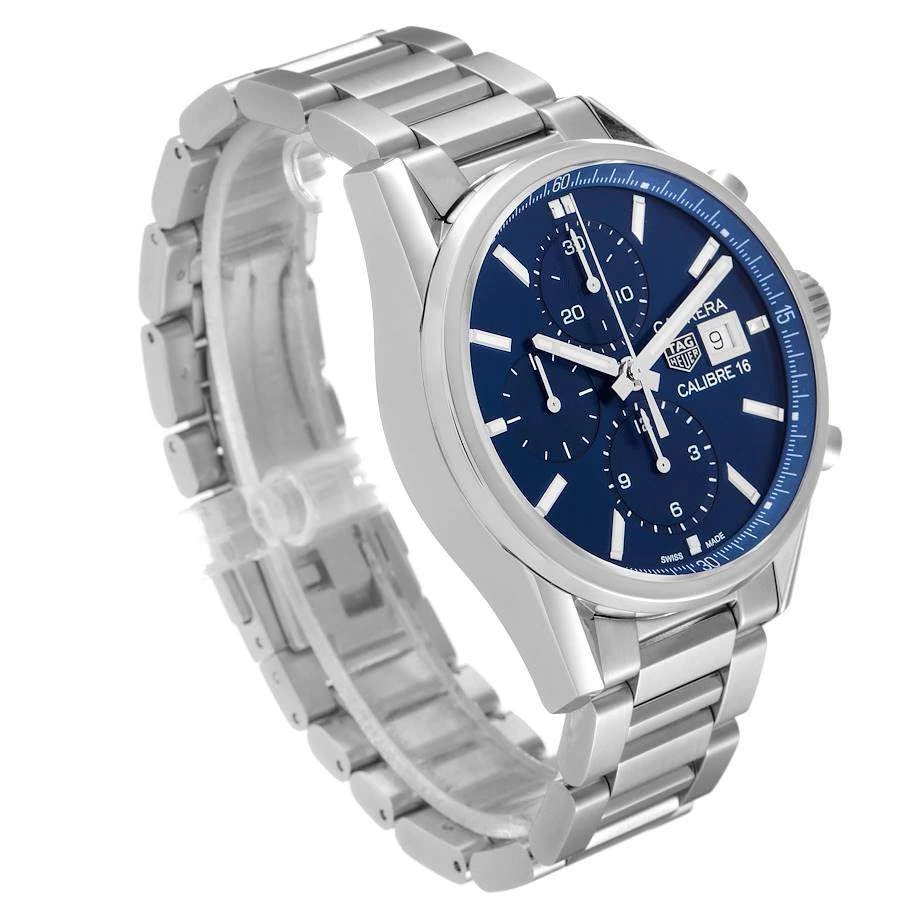 For a sophisticated look, go for this impressive Tag Heuer wristwatch. The watch combines a blue dial featuring steel index hour markers, luminous hands, and hour markers with a stainless steel case and a stainless steel smooth bezel. It is secured by a stainless steel bracelet with a push-button deployment clasp.