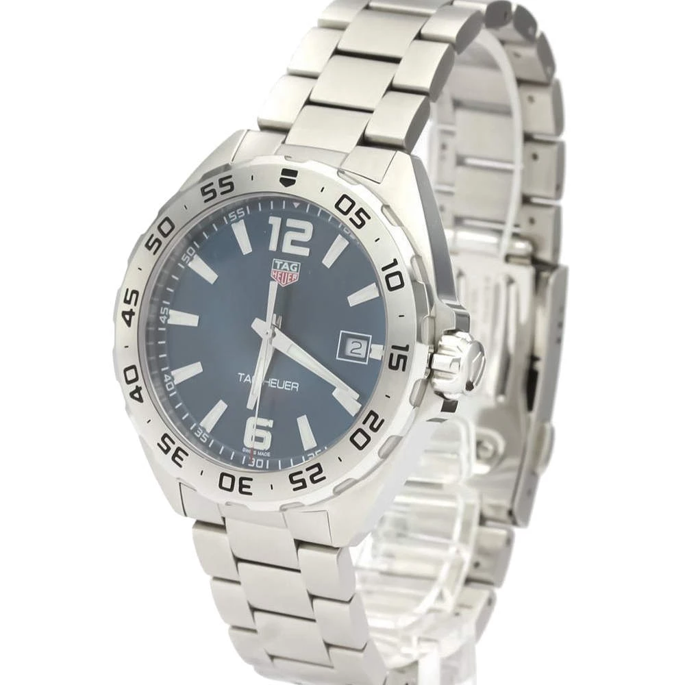 Showcasing a minimalistic yet striking design, this sophisticated Tag Heuer wristwatch will add a touch of excitement to your overall look. The watch combines a suave blue dial with a stainless steel case and bracelet. Powered by quartz movement, this watch comes equipped with a date function.