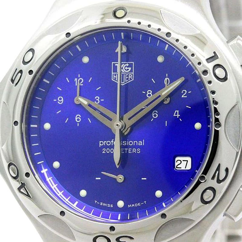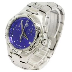 TAG Heuer timepieces are simple in design but powerful in performance. This watch from Kirium chronograph watch collection sports a stainless steel case and bracelet, luminescent silver-tone hands and hour dots against an electric blue dial.Β It features a unidirectional rotating dial, chronograph sub-dials and date display at 4 o’clock. The watch is powered by Swiss quartz movement and is water-resistant up to 200 meters.