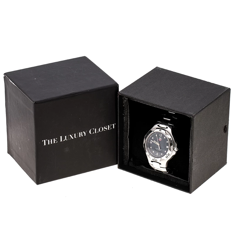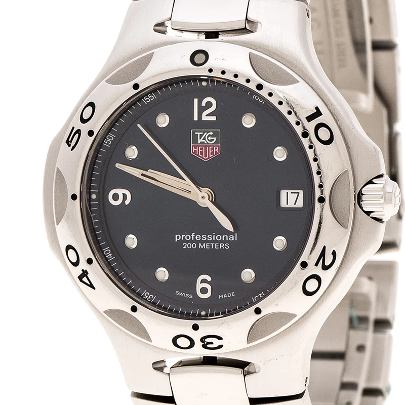 This exquisite creation from the house of Tag Heuer is skillfully crafted from a stainless steel body and a case diameter of 39mm. It comes with a blue rounded dial featuring silver-tone hands and markers and a date window at the three o’ clock position. It comes fitted with a bracelet strap and secured with a clasp closure.