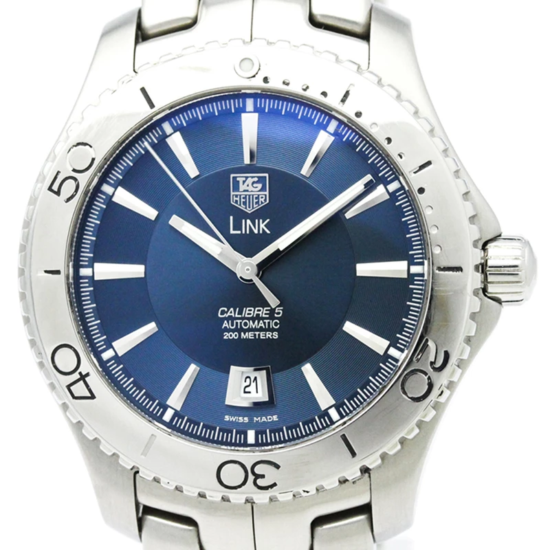 Coming from the house of Tag Heuer, this watch is a classic piece to own. It is characterised by a stainless steel body with a case diameter of 42mm. It comes with a minimal, rounded blue dial detailed with silver-tone hands and markers and a date window at the six o’ clock position. This watch is powered by an automatic movement and features a transparent case-back. This watch comes fitted with a bracelet strap for wrist sizes 7.28” and secured with a clasp closure.