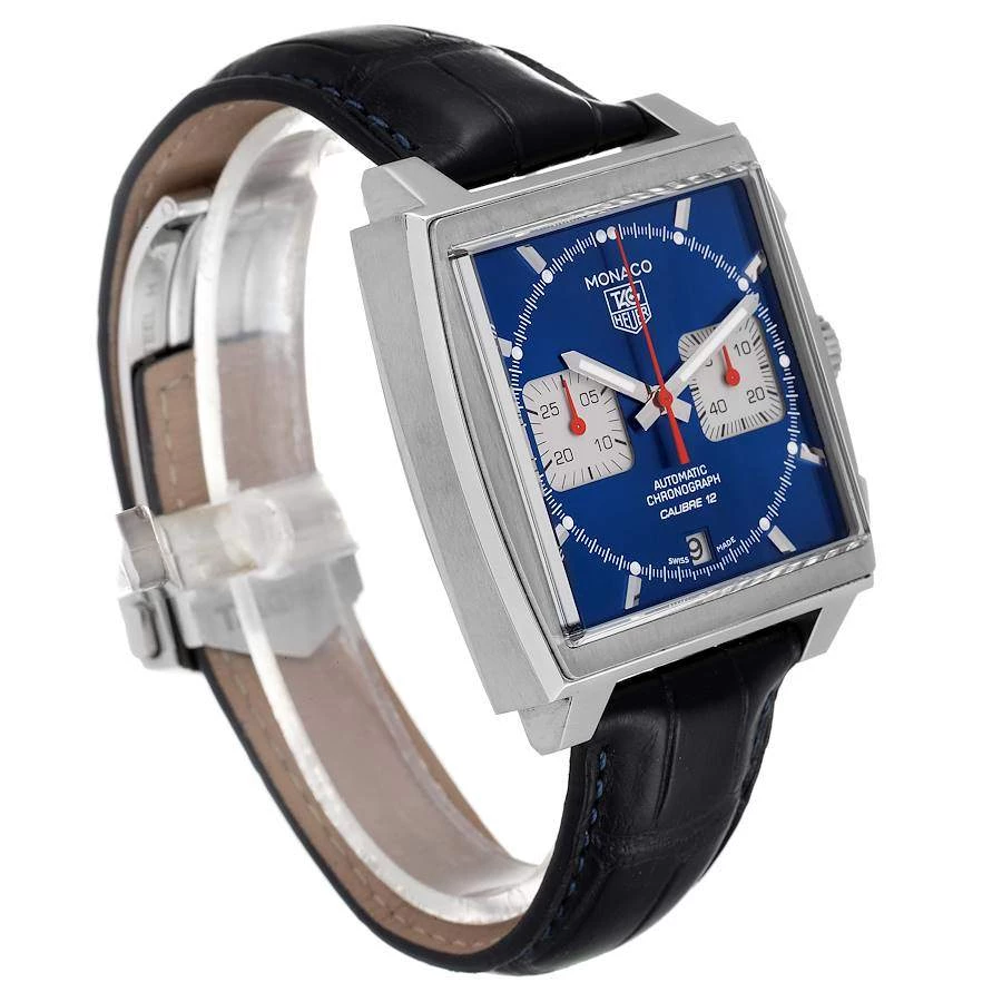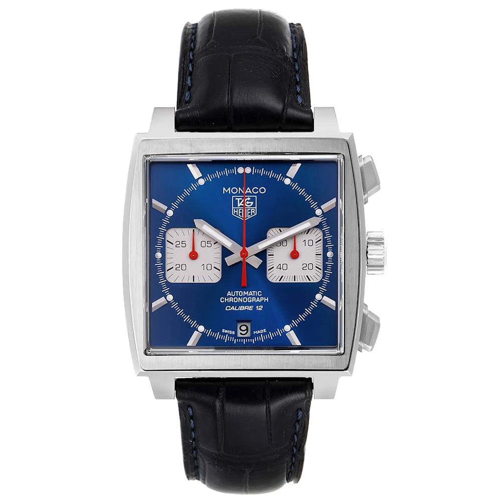 Showcase your best side with the Tag Heuer wristwatch. Designed with a stainless steel case that surrounds a blue dial, this timepiece comes with a leather bracelet with folding buckle. The superior functions of the watch is a date indicator and two chronograph subdials.