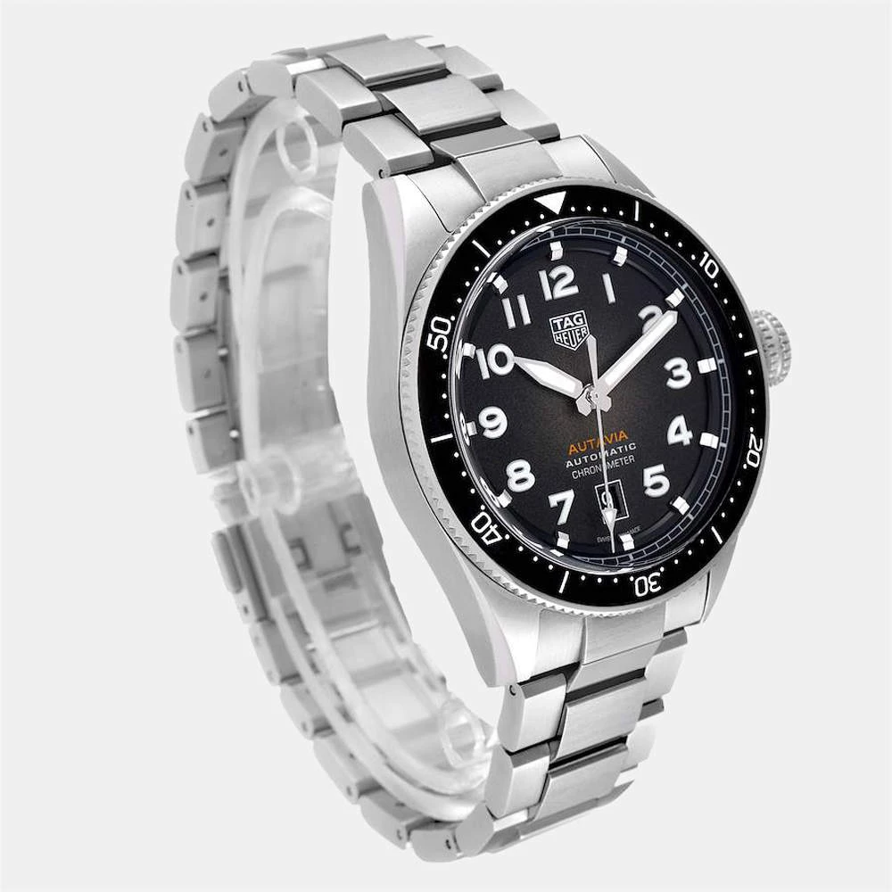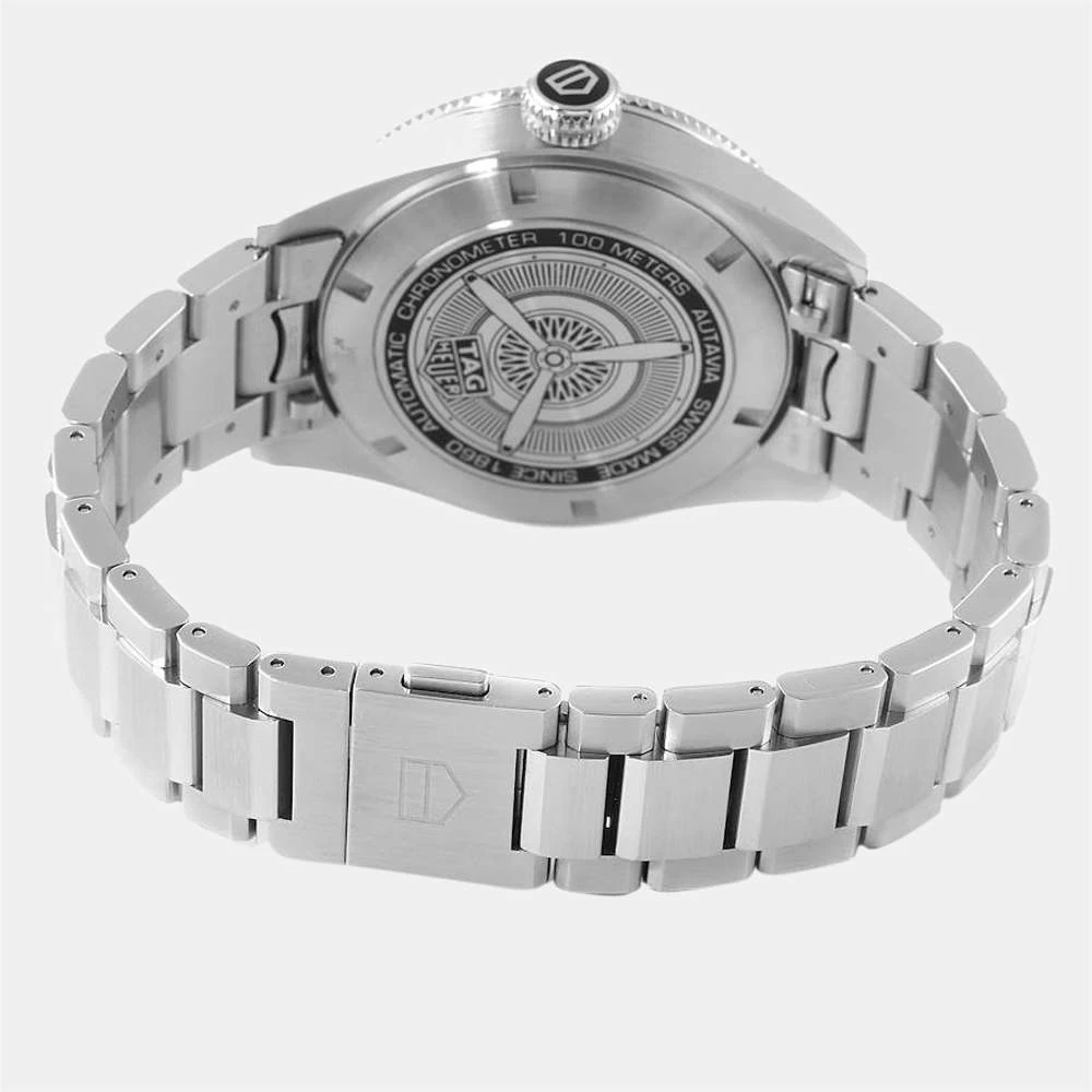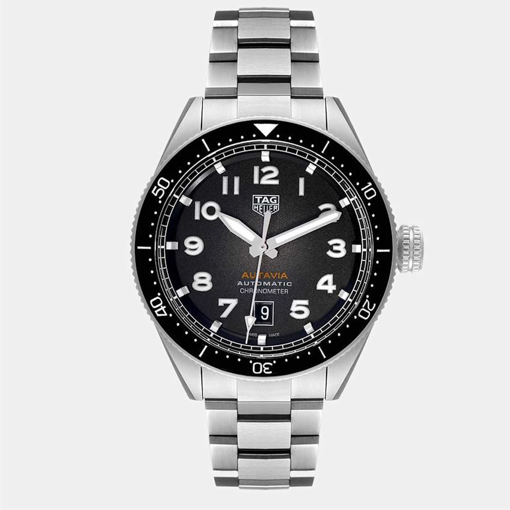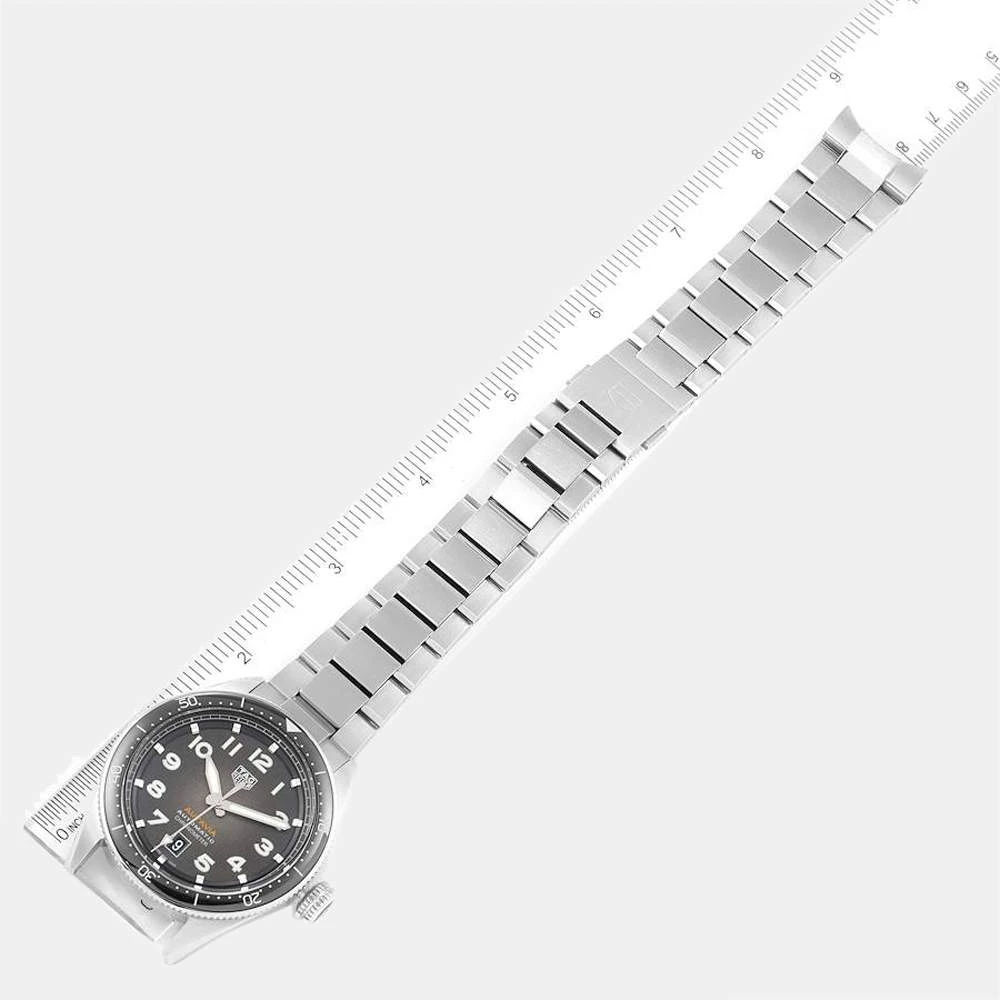 This stylish Tag Heuer wristwatch offers the perfect balance of skill and style. The watch boasts a brown smoked dial featuring printed luminous hands and Arabic hour markers with a stainless steel case and a black ceramic bi-directional bezel. It is secured by a stainless steel bracelet with a folding push-button deployant clasp.