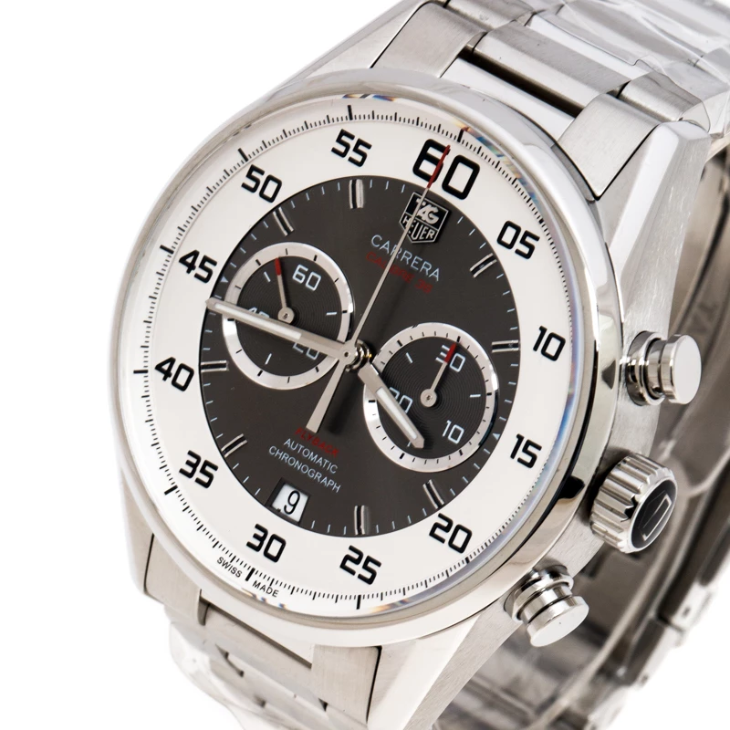 The function to tell time efficiently is magnificently executed via this gem of a timepiece by Tag Heuer. From the Carrera Calibre 36 Flyback series, the watch comes in a stainless steel body. A scratch-resistant sapphire crystal protects a grey dial featuring two subdials and flyback around the outer rim. It follows an automatic movement and has 50 hours of power reserve. The push button clasp will help fasten the watch to your wrist.