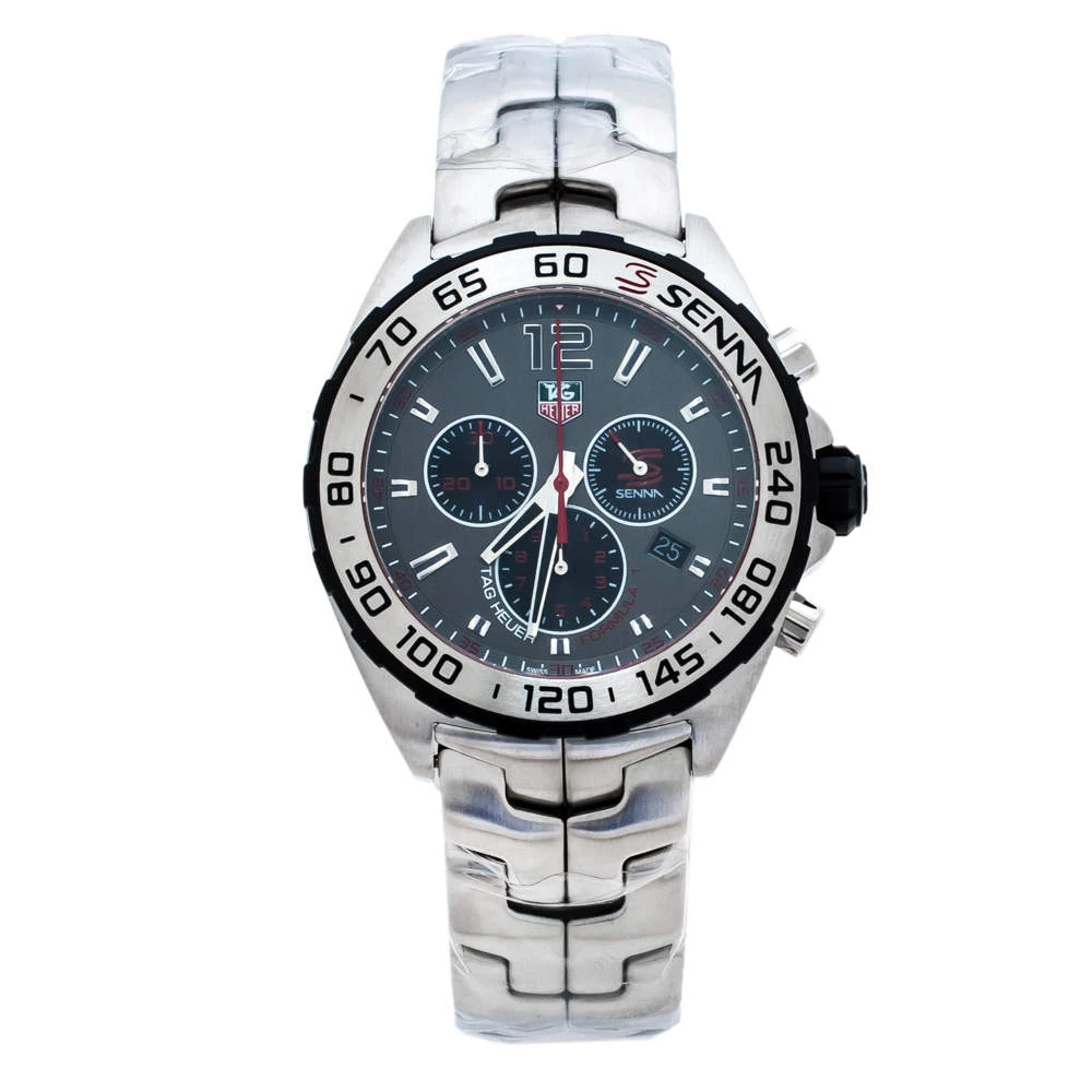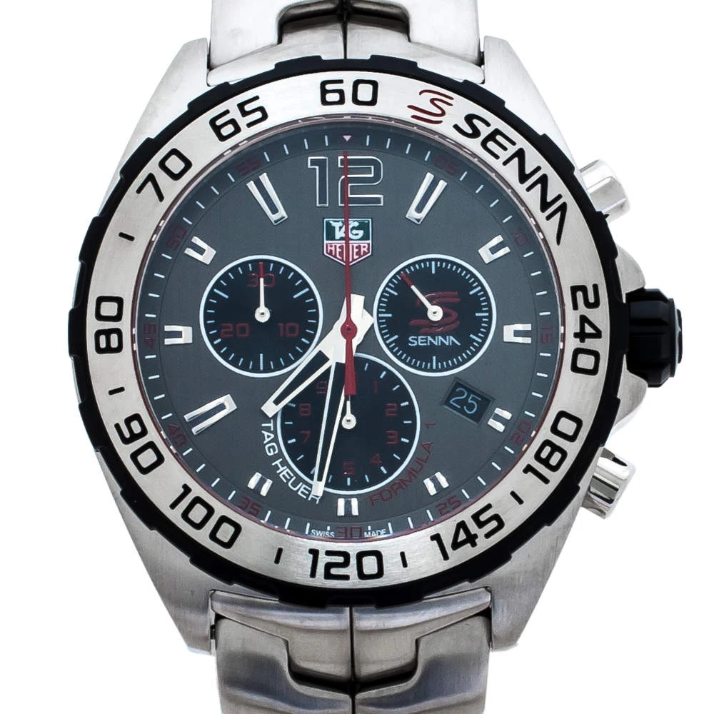 Formula 1 watches from Tag Heuer are high-performance timepieces that are meticulously crafted to meet the wants of an on-the-go life. Designed with a 43 MM stainless steel case, the quartz watch features a circular dial with luminous hands and markers. Topped with a water resistance of 200 meters, this robust, sporty-looking watch is complete with a stainless steel bracelet secured by a deployment clasp.