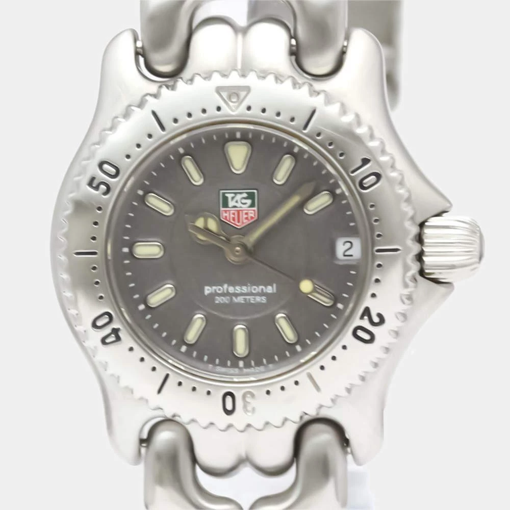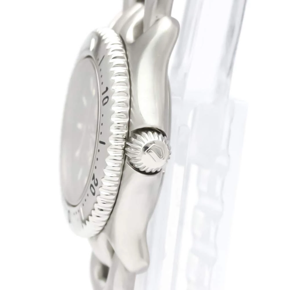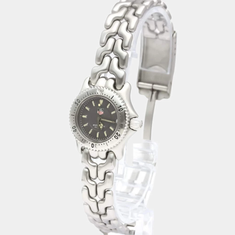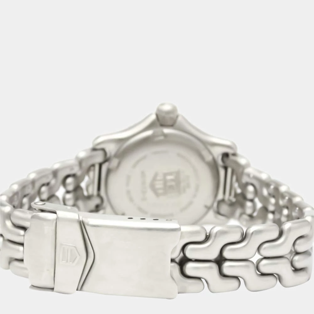 A watch for the ages, this timepiece is crafted by the house of Tag Heuer. It has a gorgeous set of linked stainless-steel straps with a strategically weighted case and a rotation enabled bezel. This watch has a black dial with index hour markers and baton shaped arms.