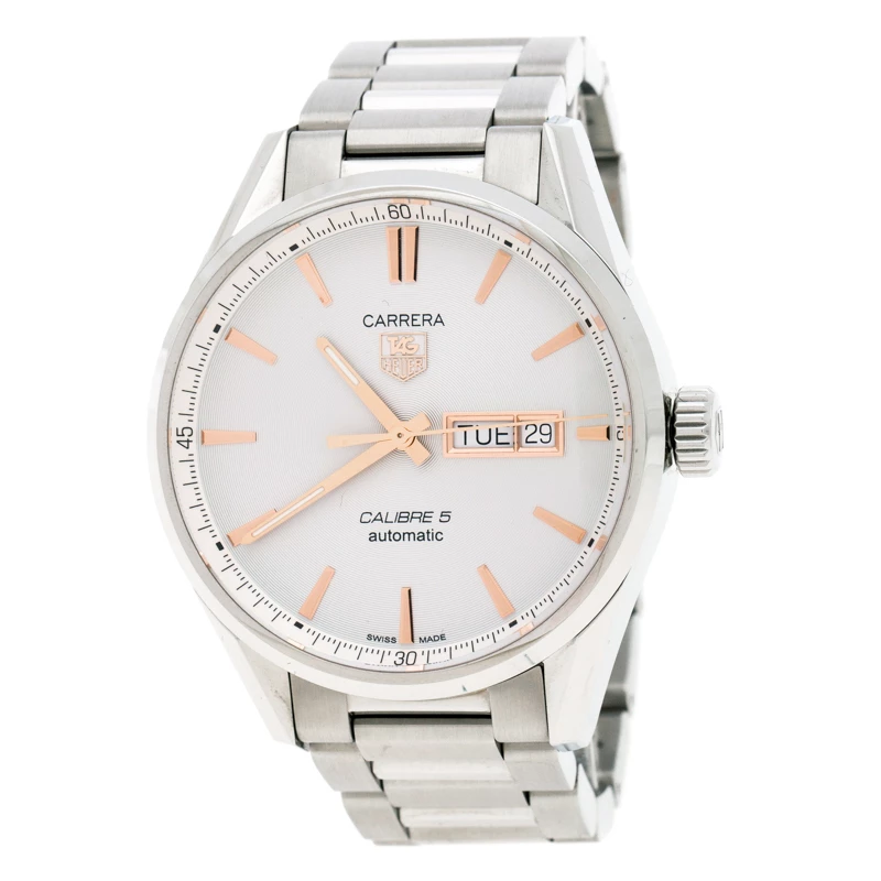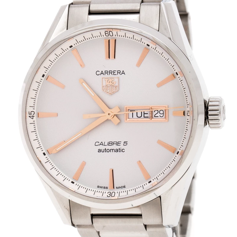 Bring home this magnificent Carrera watch from Tag Heuer. Crafted in a stainless steel body, this watch comes with a case diameter of 40mm. It features a rounded dial detailed with a day-date window and gold-tone markers. This Automatic-powered watch comes fitted with a bracelet strap and secured with a simple closure. It also features a transparent case-back that gives us a glimpse into the intense mechanism.