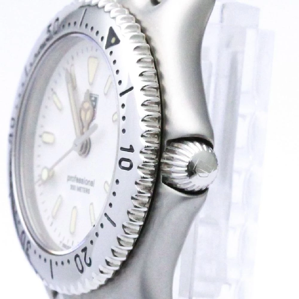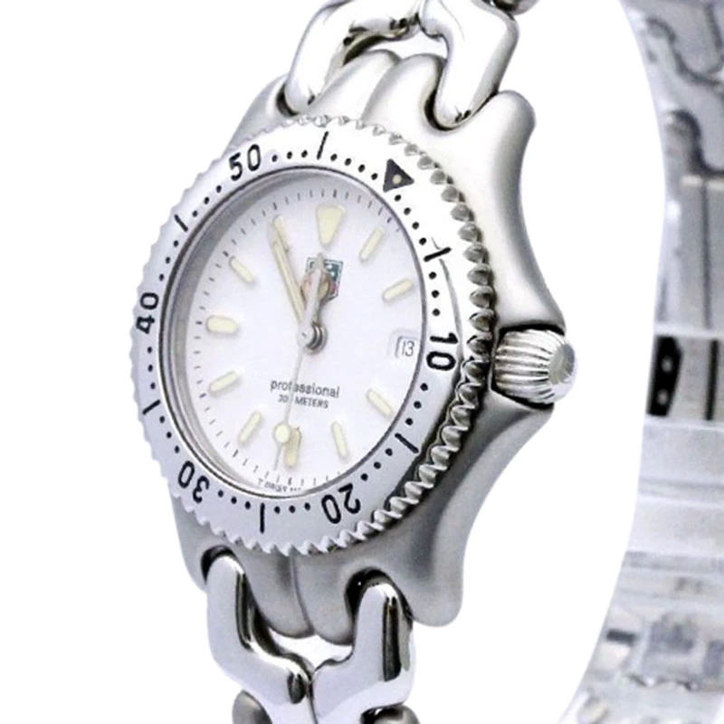 Tag Heuer’s Professional series wristwatch is designed to perfection. A stainless steel body and bezel in an attractive silver shade holds a pristine white dial. The Quartz movement watch has batons, indices and all the hands along with a date window at 3’ o clock. A stainless steel bracelet with tire design is fastened with a deployant clasp. A versatile creation that goes well with your sharp and casual attire.